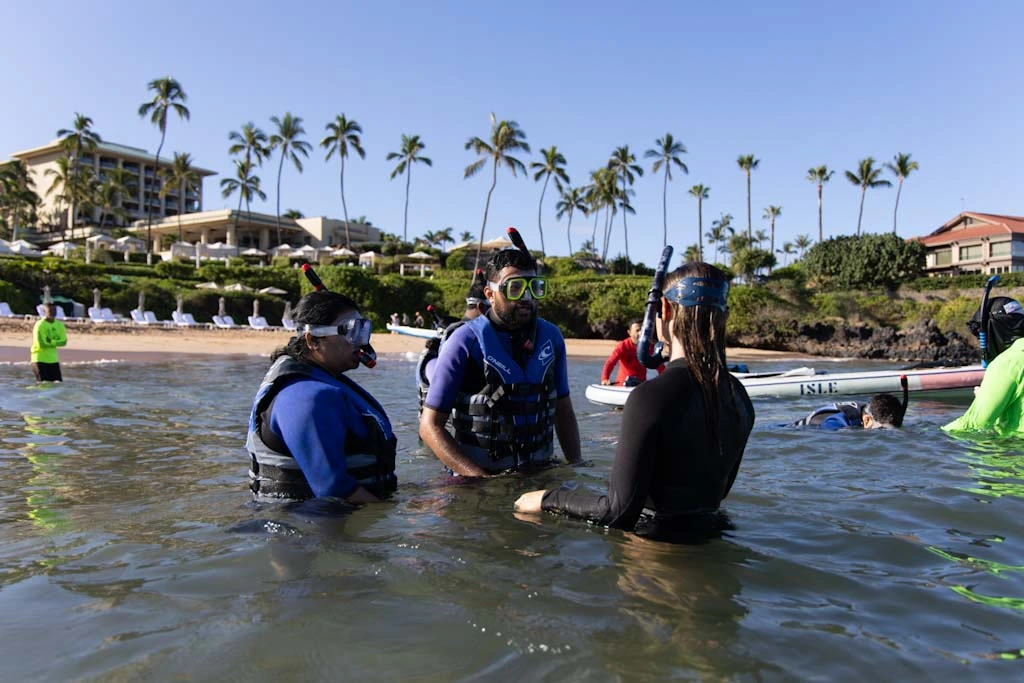 A unique 24-hour retreat for first-time snorkelers. Day one: pool training with equipment, floating support, and safety basics. Day two: guided reef snorkeling at Wailea Beach. Guests build confidence step-by-step, moving from pool to ocean with cultural learning included.