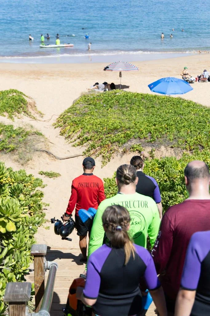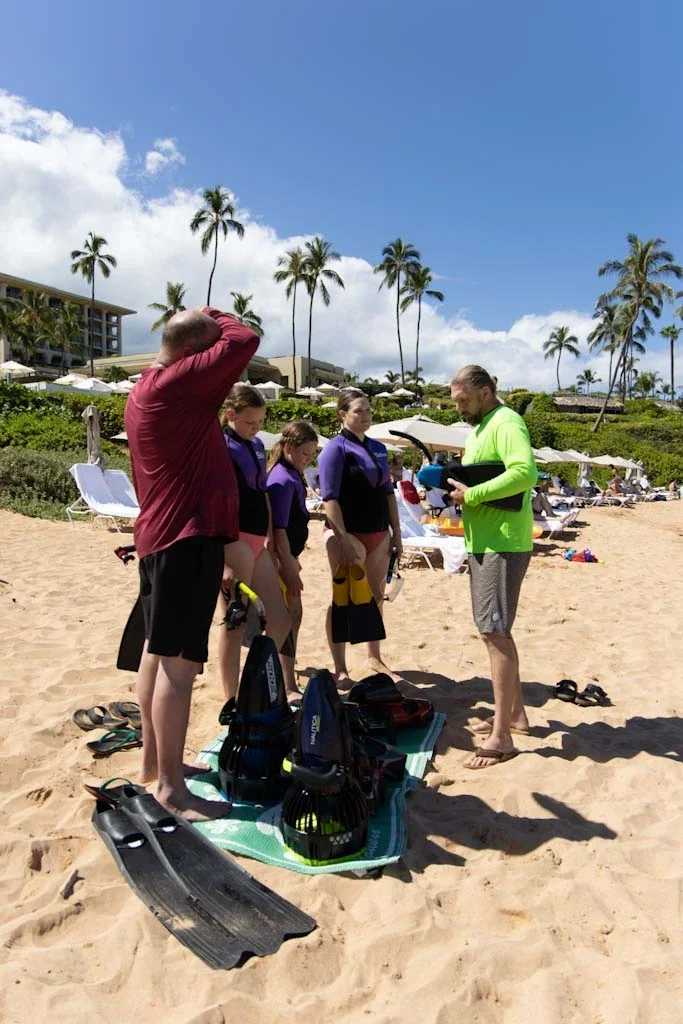 Day two is a guided snorkel at Wailea Beach, applying pool practice with full guide support.